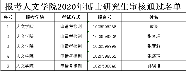 报考蕾丝视频 2020年博士研究生审核通过名单
