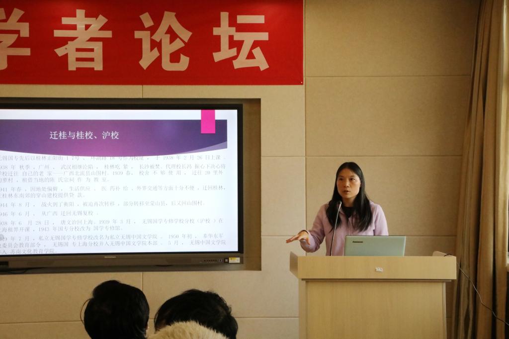 党委姚剑英书记、副院长杨晖教授,中文系罗兴萍教授、张喜贵教授、郭勇教授、蔡华祥教授,与学院青年教师及学生共同参会,围绕“当代学术视野下的无锡国专”进行研讨交流。
