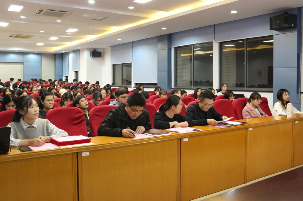 2020年暑期社会实践工作总结报告。邓老师在报告中简要介绍了暑期社会实践的前期筹备、中期开展的基本情况及取得的成果。2020年,共有771名在校学生参与了本次社会实践,有13支团队通过筛选被列为院级重点实践团队。在学院党政领导的支持下,同学们通过“云组队”、“云调研”等方式,积极投身到“返家乡”实践、理论宣讲、科学调研、文化保护等项目中来,在亲身实践中锻炼才干、锤炼意志,在服务奉献中绽放青春、筑梦未来。希望大家坚持“以知促行,以行促知”。在接下来的学习中,将求知与实践结合起来,既要多读“有字之书”,也要在社会实践中读懂“国家和社会”这本“无字之书”。