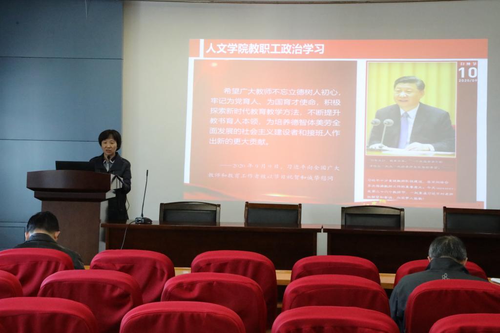 在田家炳楼209会议室召开教职工大会,内容包括以十九届五中全会学习为主要内容的教职工政治学习、心理专题培训和近期工作部署等,并邀请校社科处处长浦徐进教授做了2021年国家社科基金项目申报动员培训。