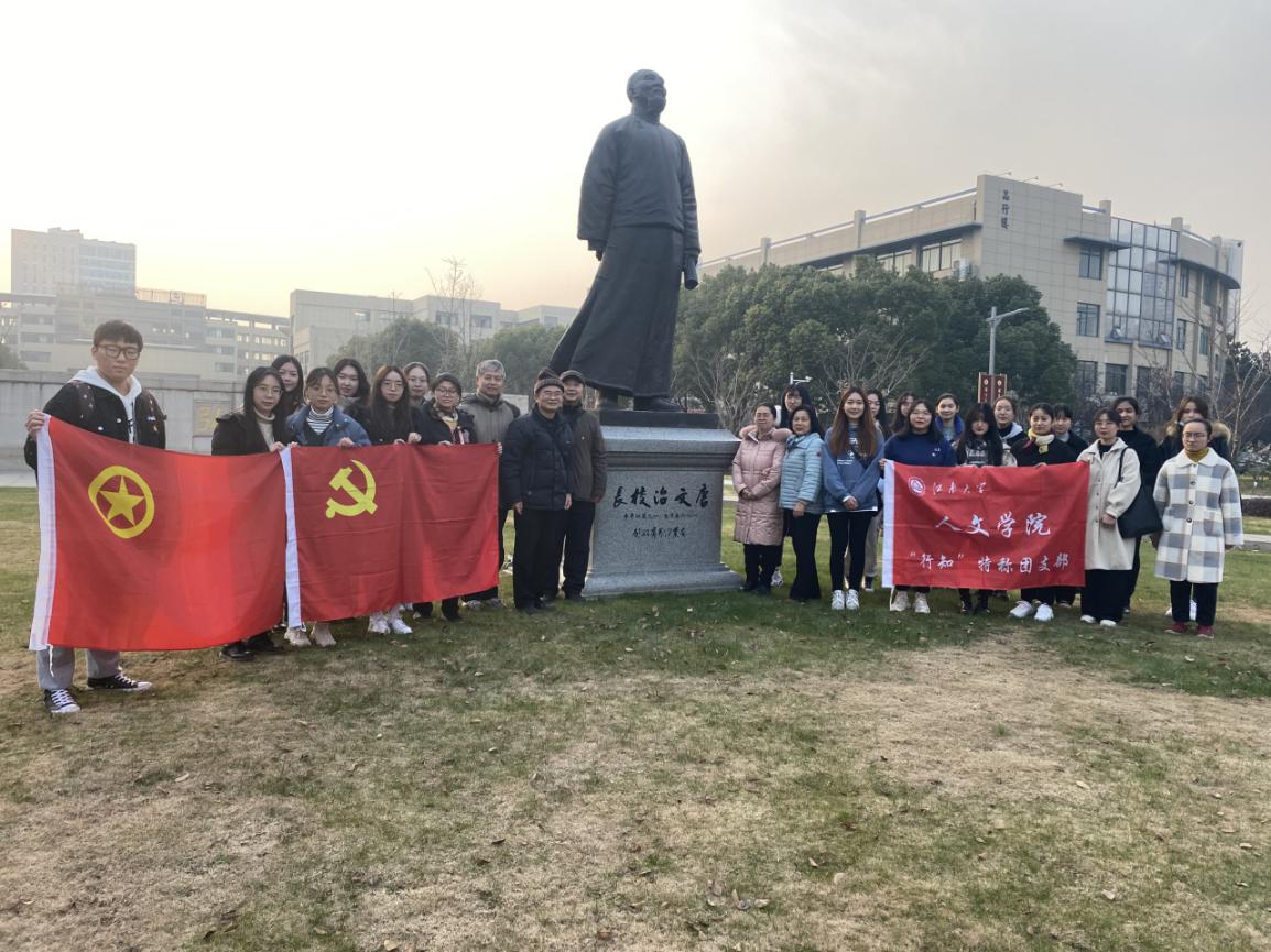 唐文治先生铜像前合影
