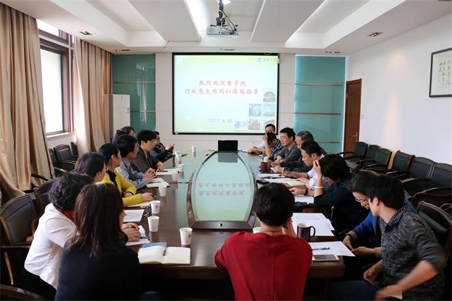 行政党支部与商学院行政教辅党支部在田家炳楼207会议室,就党支部工作进行了交流、学习,商学院党委书记李佳敏、蕾丝视频