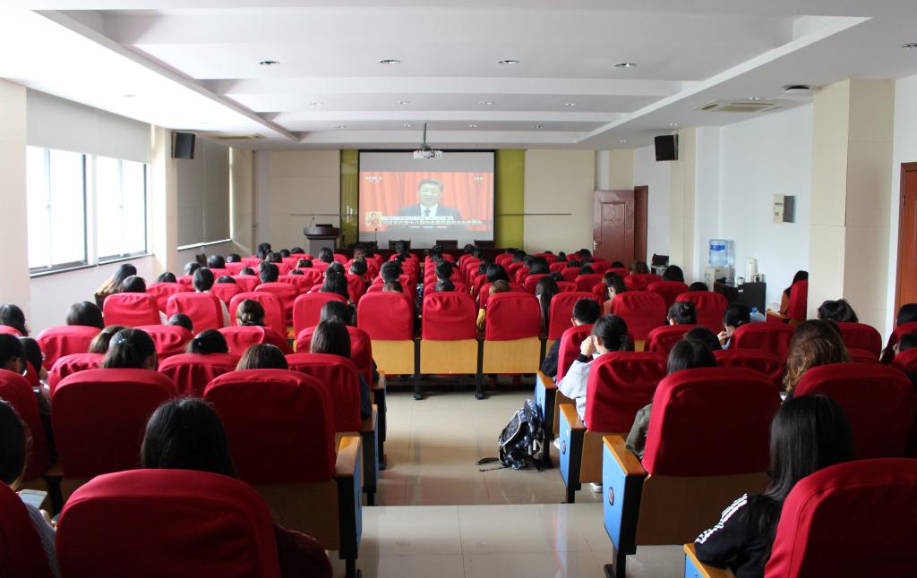 党委组织学院师生在田家炳楼207和209两个会议室,一起观看了本次大会开幕会的现场直播,共同聆听了习近平总书记的工作报告,同步感受了人民大会堂的庄严气氛和阵阵掌声。