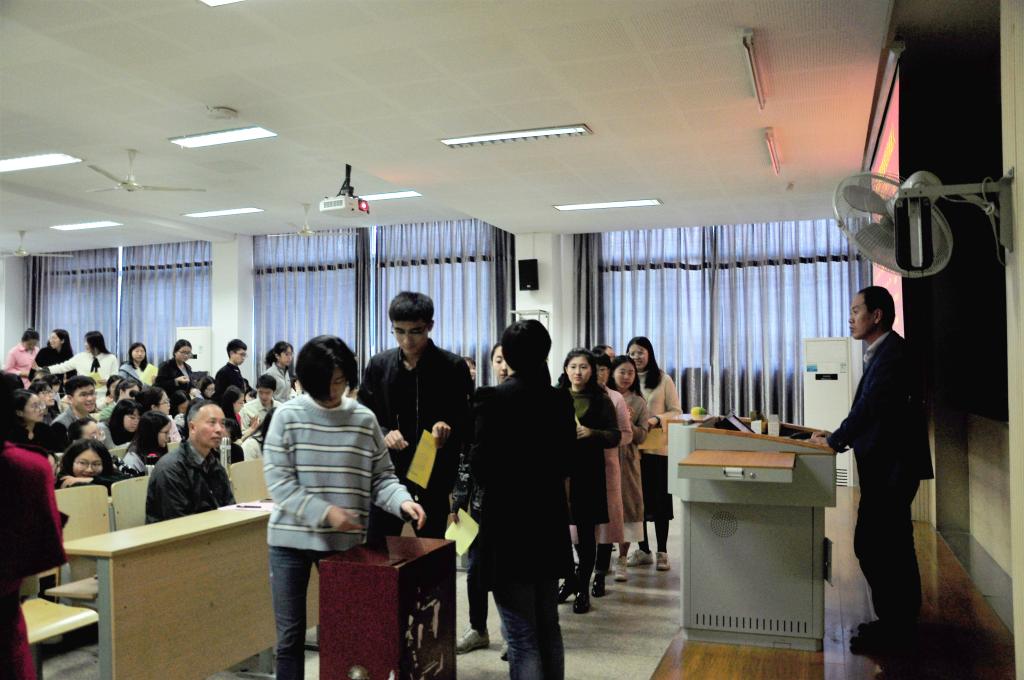 党委在一教楼1B103教室召开全体党员大会进行党委换届选举工作。共计150名正式党员,53名预备党员参加了此次会议。大会由蕾丝视频