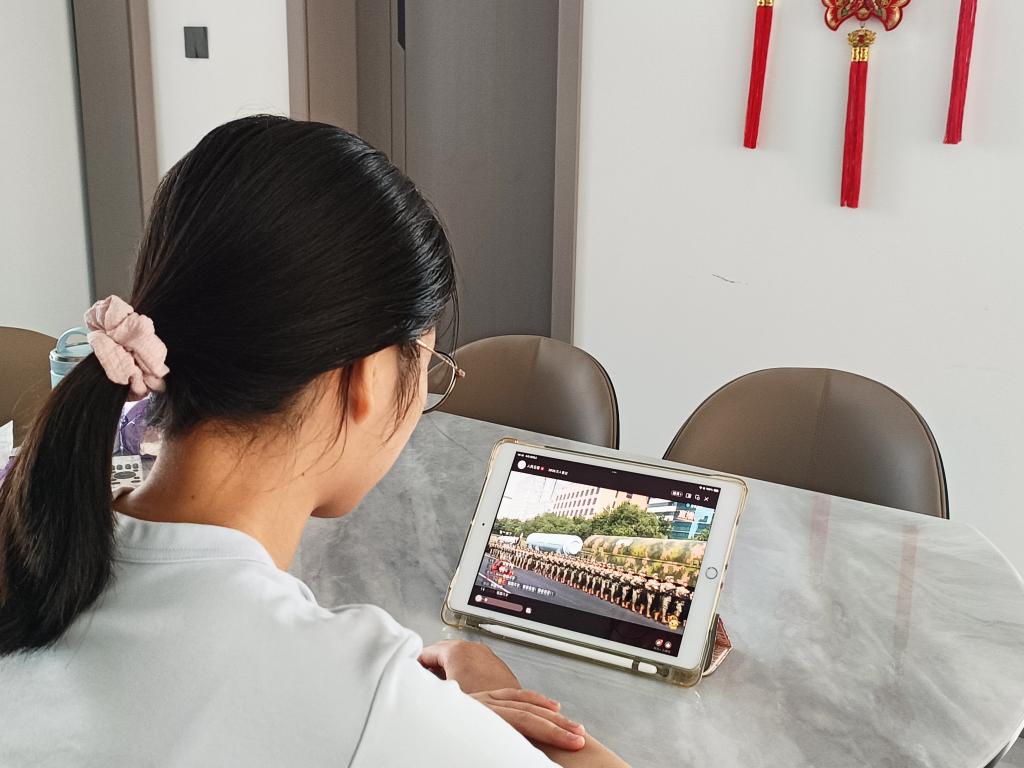 与此同时,学院各党支部积极响应号召,组织党员以居家、寝室为单位开展同步收看。党员们通过电脑、手机等设备同步跟进直播,围绕阅兵式中的历史元素与时代意义展开简要交流。