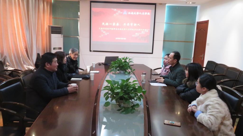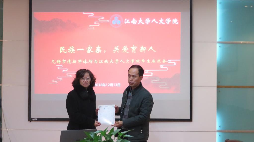少数民族学生的关爱表示感谢,对两位学生的努力与成绩表示肯定。他表示,学生经过层层选拔考取本校,都是新疆学生中的优秀者,相信通过他们努力,一定能够取得更大的进步,更好地回馈社会。同时,吴书记还表示希望进一步加强与无锡市清扬军休所的交流工作,发挥军休老同志的优势,在人文学子中进行革命传统、爱国主义、集体主义等教育。