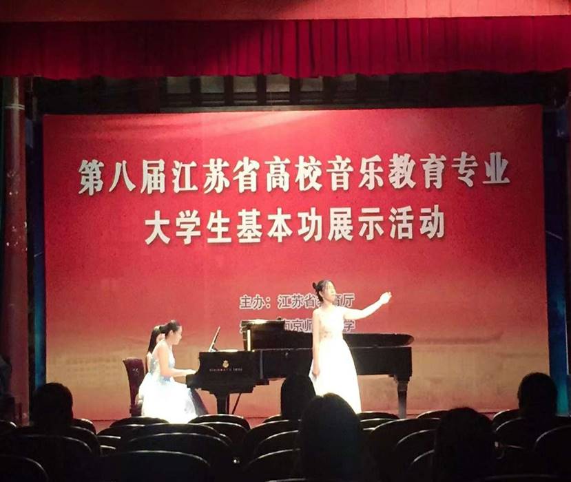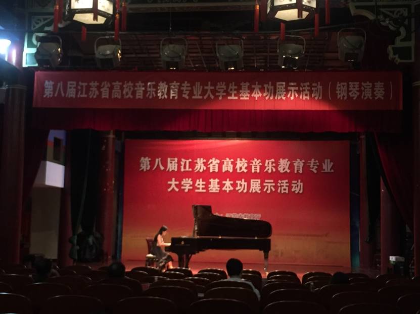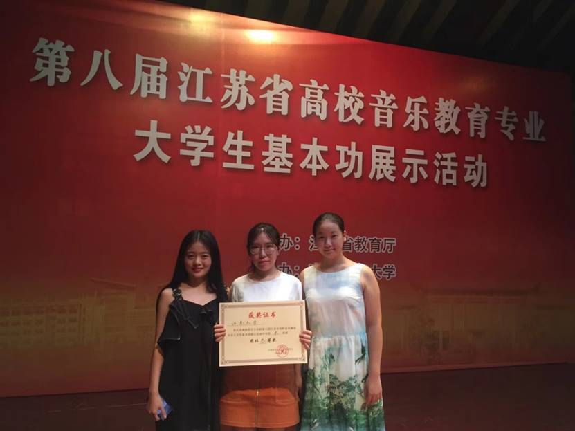 院系领导的大力支持以及音乐系教师们整个暑假的悉心指导下,学生们在专业上得到了很大的提升。最终在南京师范大学随园校区经过两天紧张激烈的角逐后,许晶晶荣获钢琴演奏单项奖,夏婉莹荣获中外乐器演奏单项奖和个人全能二等奖。