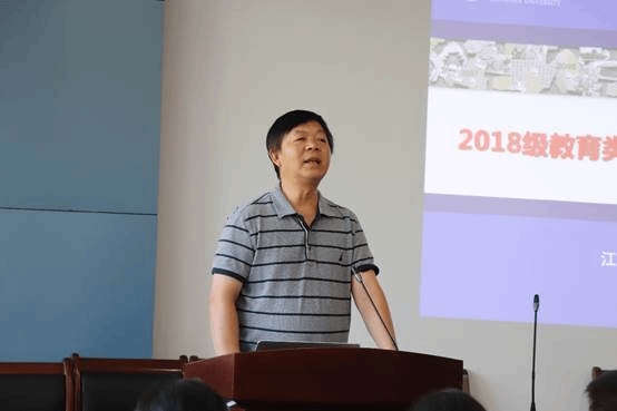 首先,田良臣教授对教育类新生的到来表示热烈的欢迎,指出“百年大计教育为本,教育大计教师为本,教师大计师范为本”,同学们选择教育类专业是非常具有智慧的选择。同时,田院长还对于2018级新生寄予厚望,指出“我们现在处于需要大师、追求大师、缺少大师的时代。因此要求同学们要有大梦想、大追求”。田院长借由毛泽东和马云的例子向大家说明,教育的重要性,选择教育类专业的正确性。
