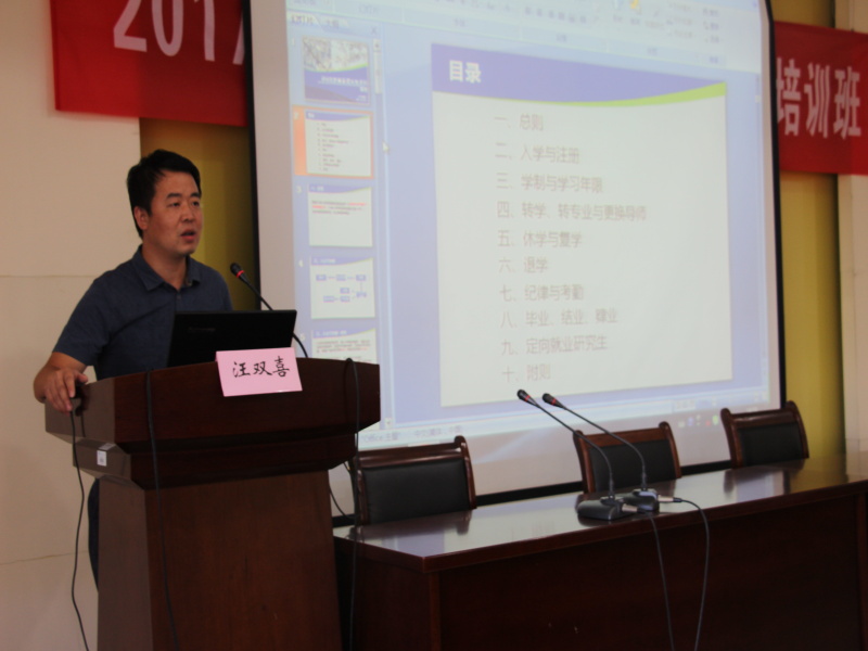 会议伊始,汪双喜书记就学生工作进行了发言,对学风学纪问题进行了重点说明,明确指出对于论文抄袭等严重违纪行为的零容忍,给同学们敲响了警钟,相信经过汪书记的谆谆教导,同学们能够对学校规定有更加深入的认识,遵循学校纪律,端正态度,认真学习,顺利完成学业。随后,在学生们屏气凝神的目光中,田院长微笑着走上台,与同学们谈起了日后的研究和学习,循循善诱,让同学们更加明确了日后的学习目标和计划,也给同学们带来了很多的思考。在发言的最后,田院长对于同学们进行了亲切的关怀,希望同学们能够有一个快乐的研究生生活。