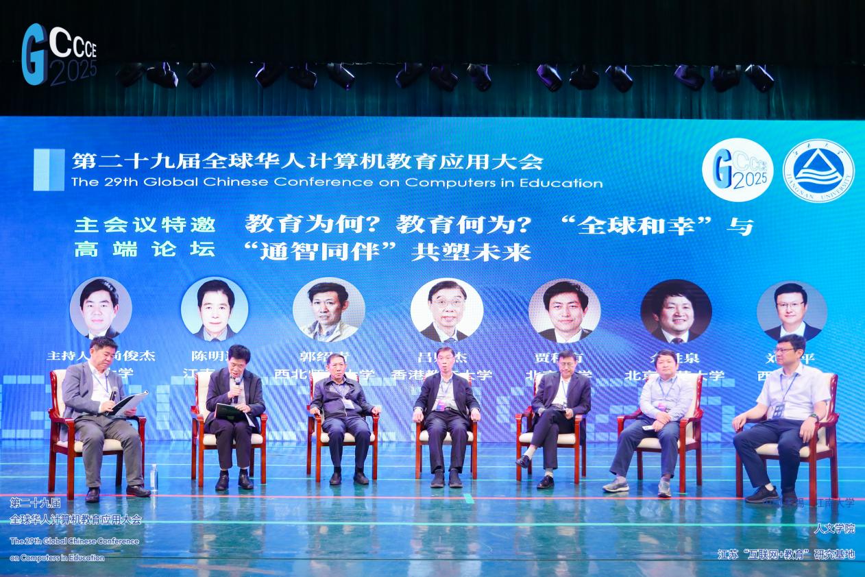 陈明选教授、西北师范大学郭绍青教授、北京大学贾积有教授、香港教育大学吕赐杰教授、西南大学刘革平教授以及北京师范大学余胜泉教授六位国内顶尖学者围绕“教育为何?教育何为?‘全球和幸’与‘通智同伴’共塑未来”展开热烈讨论,深度探讨了“全球和幸”教育理念的实践路径。