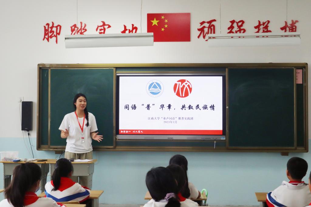 “童声同语”推普实践团前往新疆伊犁州霍城县江阴小学开展“推普助力乡村振兴”社会志愿服务活动。