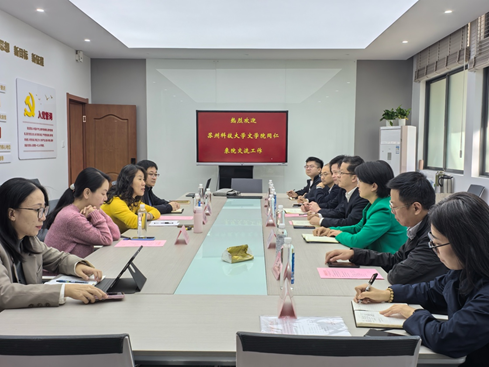 自身的发展历程、专业布局、师资结构以及在国内人文领域的教育特色与优势,并重点就戏剧与影视专硕申报与新文科认证等工作经验展开交流分享。黄晓丹介绍了江南文化研究中心平台建设的基本情况,并交流了相关工作亮点。陈佳冀介绍了我院新版人才培养方案修订的主要变化与未来发展方向。随后,双方就两校校史渊源、中文专业人才培养、师资建设、国际教育等工作经验展开了深入交流,现场讨论气氛热烈。