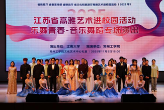 美育成果的一次集中展示,也是两校师生艺术交流的重要平台。《乐舞青春》专场演出作为江苏省高雅艺术进校园活动的重要组成部分,旨在通过高质量的艺术呈现,使青年学子在感受经典与当代艺术魅力的同时,思考青春的价值与方向。演出不仅是一场视听盛宴,更是一堂生动的美育实践课,它通过高品质的艺术演绎,引导青年学子在经典与现代的交融中陶冶情操、温润心灵,自觉传承中华优秀传统文化,弘扬向真、向善、向美、向上的校园文化。