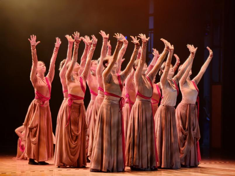 这一篇章以朗诵、声乐与舞蹈多形式呈现青春的厚度、温度与广度,展现青年学子对时代与自我的深刻理解。朗诵《寻光》以诗性语言带领观众在文字间感受青年对希望的呼唤与追寻;男声四重唱《雪花的快乐》以清亮和声展现冬日的纯净意境,传递对美好与自由的向往;获国家艺术基金资助的舞蹈《心净布达拉》以富含张力的身体表现和充满仪式感的舞台氛围,演绎心灵净化与精神升华;音舞诗韵《无锡景·家国情》则将地域文化与家国情怀融合,以丰富的舞台语汇铺展充满情感温度的文化画卷。