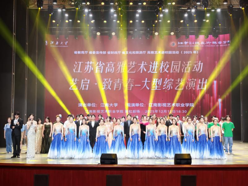 12月11日晚,2025江苏省高雅艺术进校园“艺启·致青春”大型综艺演出在江南影视艺术职业学院温情上演。江南影视艺术职业学院时尚设计学院副院长贾曚、团委副书记周蔚;蕾丝视频