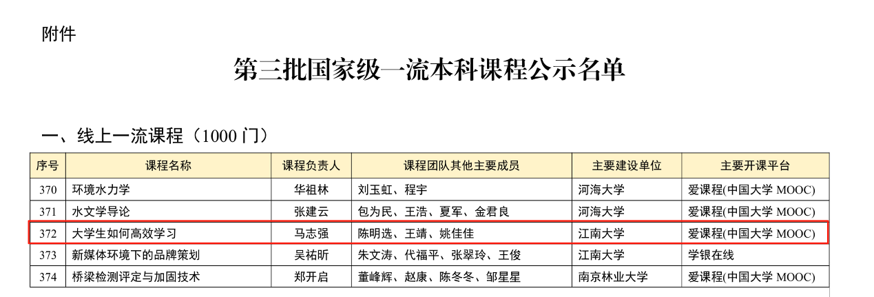 马志强教授团队主持的《大学生如何高效学习》成功入选第三批国家级线上一流本科课程。