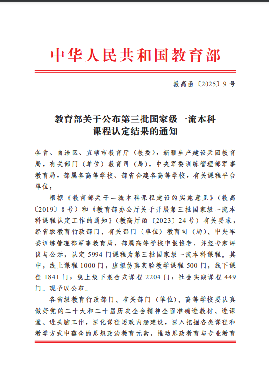 近日,《教育部关于公布第三批国家级一流本科课程认定结果的通知》(教高函〔2025〕9号)正式发布。蕾丝视频