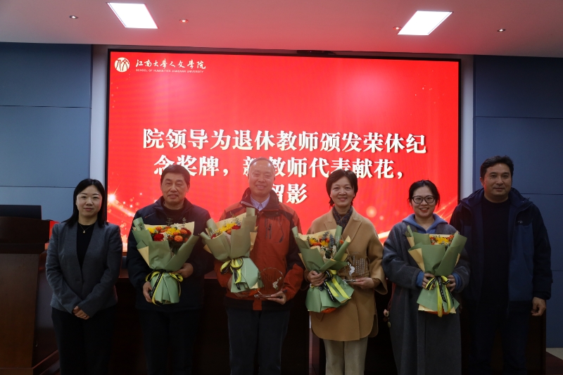 青年教师韩婷芷为参会的沈贵鹏、王小根和杨小红三位荣休教师献花,学院党委书记王晖、院长伍红林颁发荣休纪念奖牌并合影留念。在随后的荣休感言环节,三位老师分享了自己多年来在蕾丝视频