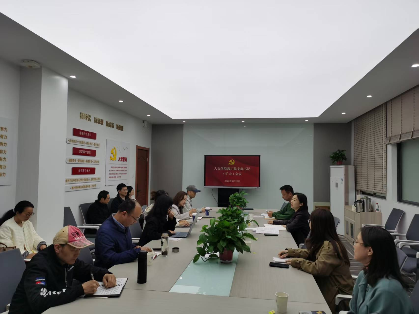 专职组织员王能文对教职工党员对接新生宿舍工作进行了布置。教师党员要进一步先锋模范作用,加强对新生的思想引领和人文关怀,拓展党建育人新阵地。各支部围绕近期拟开展的党建活动交流了计划与设想。