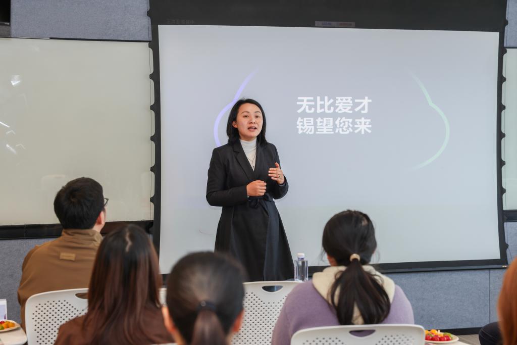 一行的到访表示热烈欢迎。王洪蕾详细介绍了新东方无锡学校的核心业务领域、当前的招聘需求以及完善的人才培养与发展体系。周毅伟结合自身经历分享职业发展现状以及入职体会。